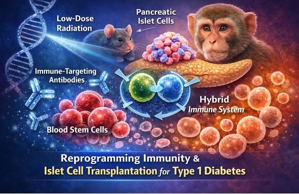 More recently, researchers have explored combining immune system reprogramming with pancreatic islet cell transplants in the treatment of type 1 diabetes. A Stanford Medicine study demonstrated how a gentler approach—low-dose radiation, immune-targeting antibodies, and blood stem cell transplantation—could both prevent and cure diabetes in mice and nonhuman primates by creating a hybrid immune system.
